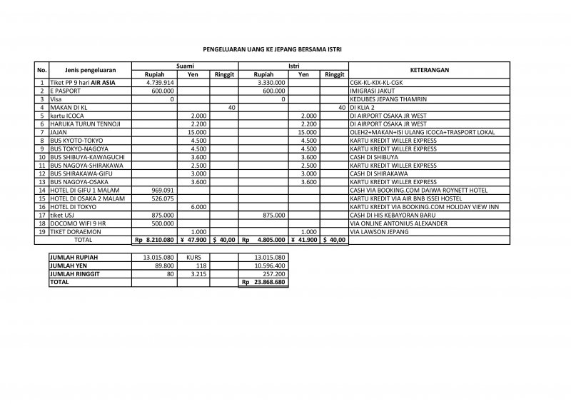 Jalan ke jepang ITTY, BIAYA, ISI TAS....