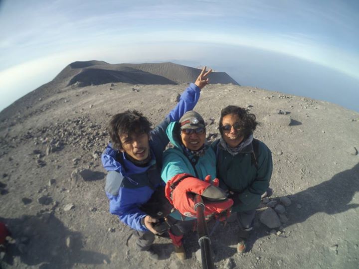 Hingga persis saat matahari tanpa malu lagi menampakkan diri, tepatnya pukul 05.30 WIB, atau setelah berjuang selama lima setengah jam, kami tiba di dataran puncak seluas kurang lebih lapangan basket. Embusan angin dingin kencang menerpa paras-paras puas para pendaki. Terdengar suara gemuruh dari perut kawah Mahameru. Sejurus berikutnya asap putih mengepul membentuk gumpalan awan indah bak menyambut kehadiran kami. Selfie time and the end!