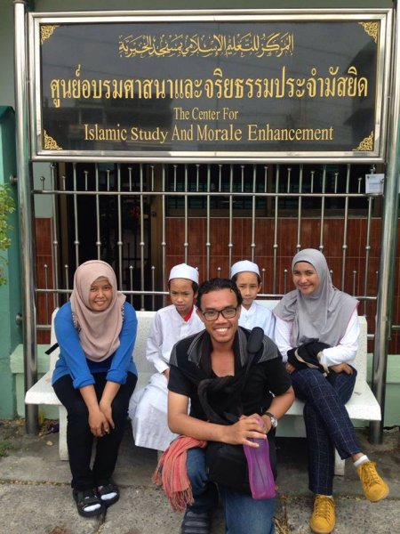 Usai berkeliling kuil Wat Pho, perjalanan dilanjutkan dengan mencari masjid di Kota Bangkok. Maklum dari tiga teman perjalanan saya, satu di antaranya laki-laki dan harus melaksanakan salat Jumat. Dari kuil Wat Pho, memilih memakai Taxi bermeter ke Masjid di kawasan Islamic Study and Morale Enhancement yang tak jauh dari BTS Sky Train Silom Line National Stadium Station. Di sini kami menemukan makanan nasi briyani dengan es teh khas Thailand.