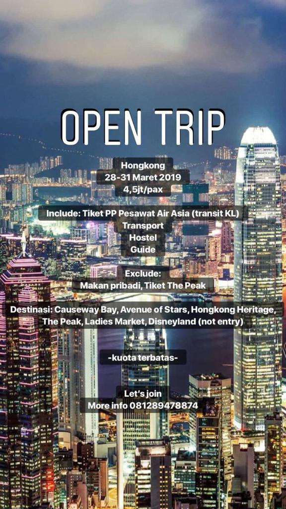 JOIN YUK HONGKONG 28-31 MARET 2019 , 4,5JT/PAX