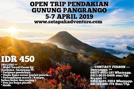 OPEN TRIP PENDAKIAN GUNUNG PANGRANGO 5-7 APRIL 2019