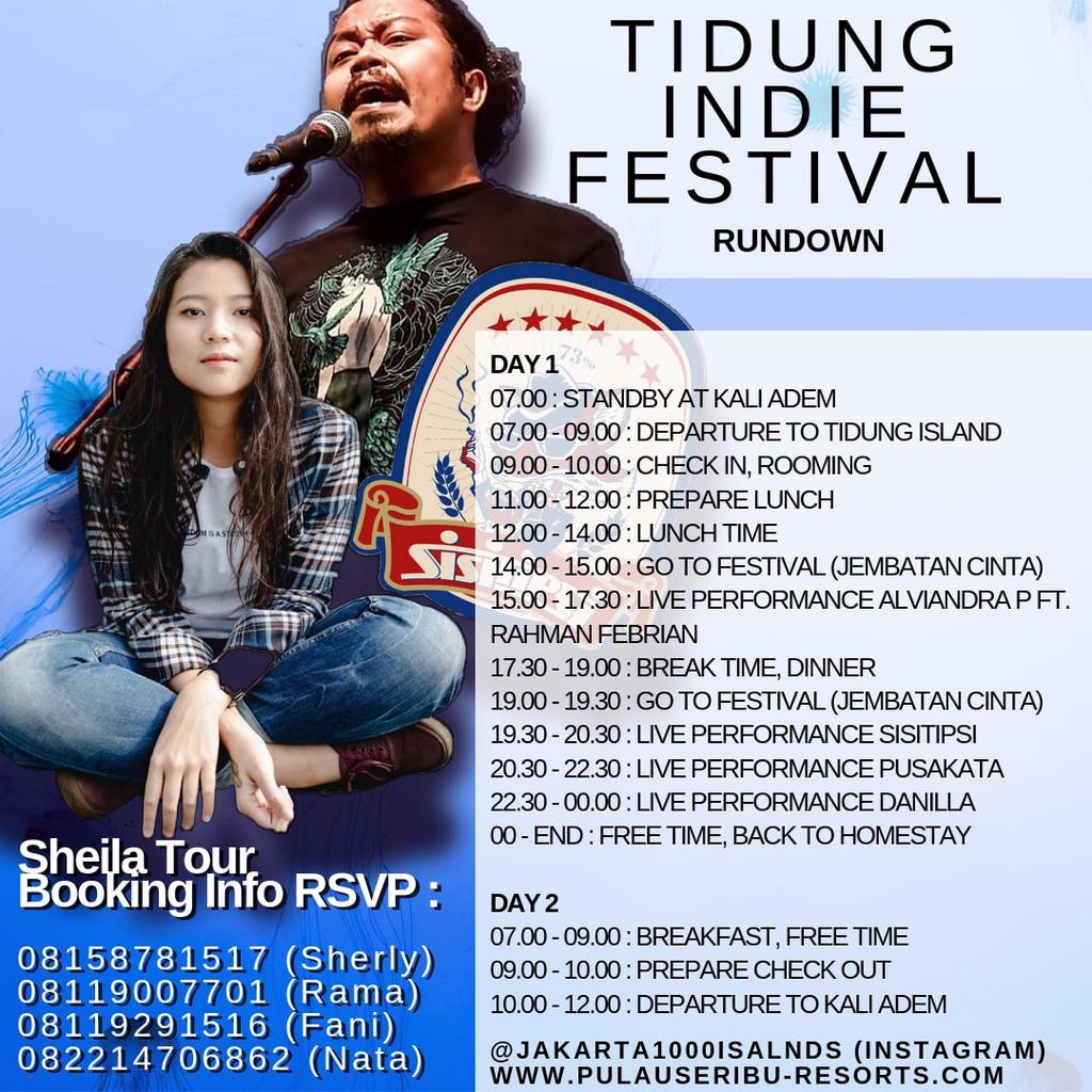 Setelah kemarin sukses dengan acara Reggae Festival di Pulau Pari, Kepulauan Seribu, Jakarta. Kini Dispar Jakarta membuat Event baru dengan tema Indie Festival yang akan digelar di Pulau Tidung.
