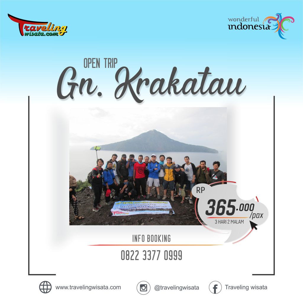 Open Trip Krakatau Lampunng murah ini memberikan biaya yang sangat relatif. Dengan harga yang murah anda bisa mengelilingi dan menikmati daerah sekitar Krakatau. Mari berkunjung ke Anak Gunung Krakatu, nikmati keindahan alamnya dengan snorkling ceria, Hopping island 4 Spot, serta hiking di Anak Gunung Krakatau. Open Trip Krakatau ini adalah salah satu alternatif bagi anda yang menyukai tempat – tempat yang tinggi dan juga pemandangan – pemandangan yang indah. Open Trip Krakatau yang kami tawarkan juga memiliki harga yang terjangkau tapi yang pastinya membuat anda menikmati kenyamanan serta kepuasan.