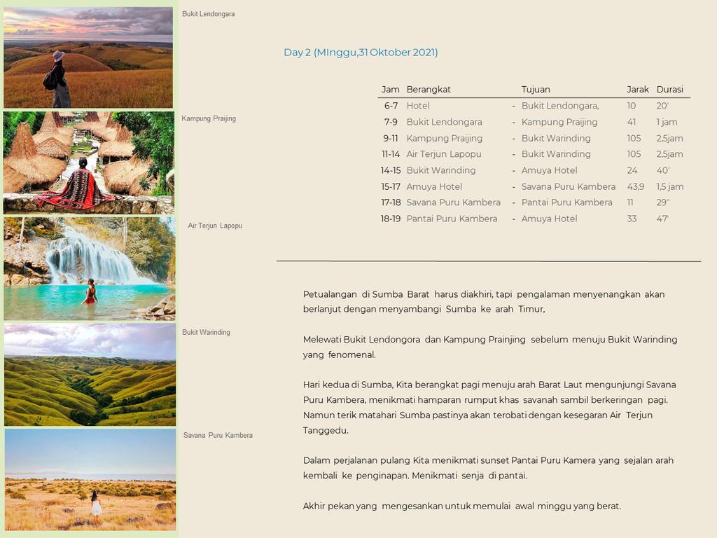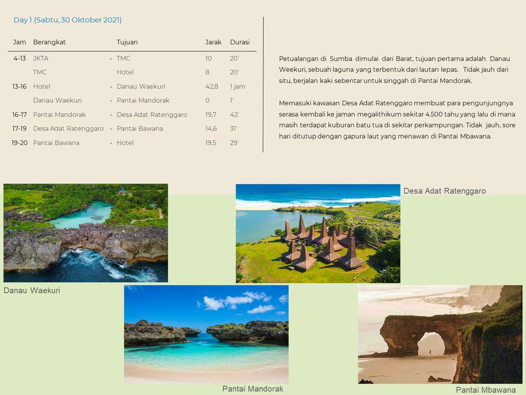 Saya ada rencana mau stay di Sumba selama 2-3 minggu dan memanfaatkan akhir pekan (sabtu-minggu) dengan explore Sumba. Berikut itinery: