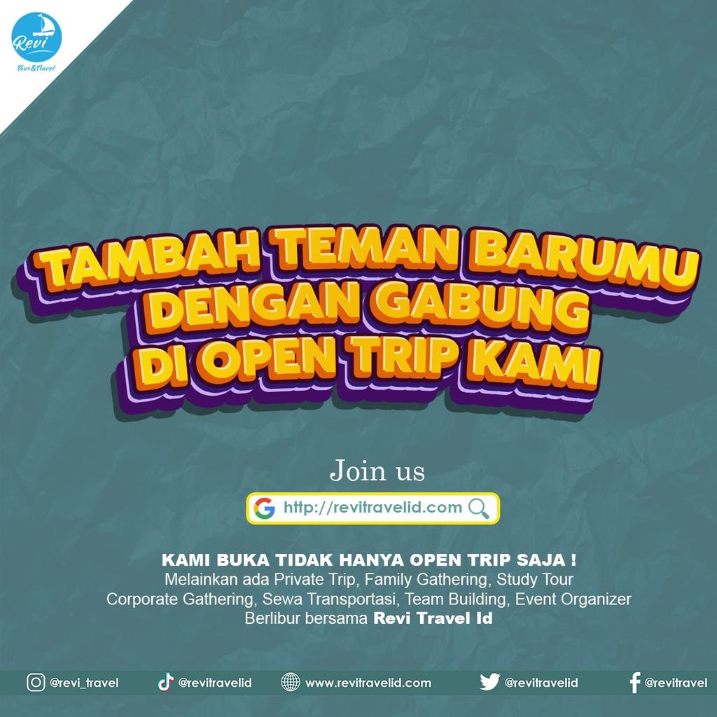 Tambah Teman barumu dengan gabung di Open Trip @revi_travel , Tetap hemat dan nikmati liburan serumu .