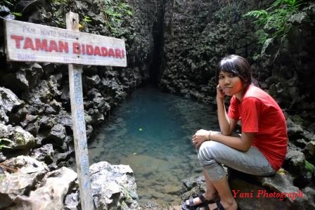 Di perjalanan ke kampung berua, kita akan melewati satu spot wisata yaitu telaga bidadari. Untuk sampai ke telaga bidadari ini kita akan trekking kurang lebih 10 menit. Jangan lupa untuk singgah berendam di sini. Airnya begitu segar, dikelilingi oleh batu-batu karst ditambah airnya yang berwarna Biru sehingga menyembunyikan dasar dari telaga tersebut. Telaga ini tidak begitu luas, namun sudah cukup untuk memanjakan diri saat bersantai di telaga ini. Konon menurut cerita rakyat setempat, dulunya telaga ini pernah didapati sosok wanita cantik yang menurut warga adalah bidadari yang singgah untuk mandi. :hahai: