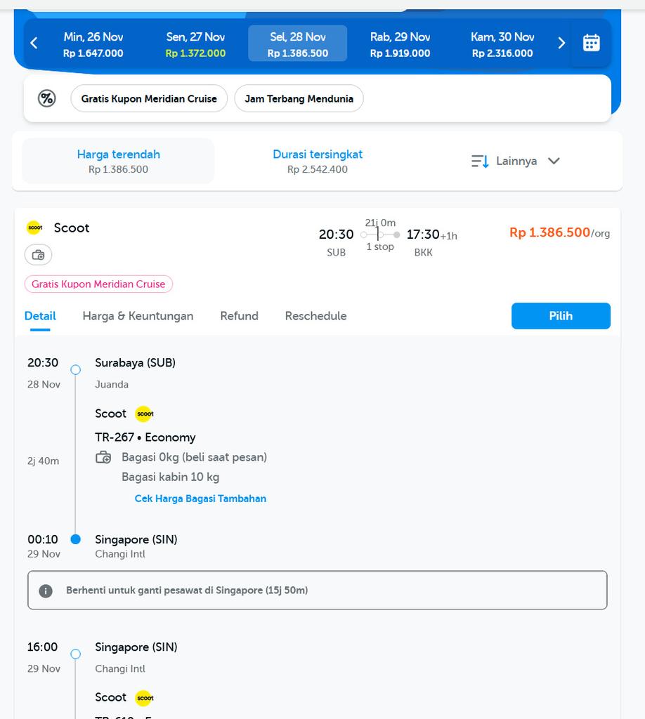 jadi rencana nya sekitar tanggal 27 Nopember 2023 dr surabaya ke Bangkok, dengan naik SCOOT