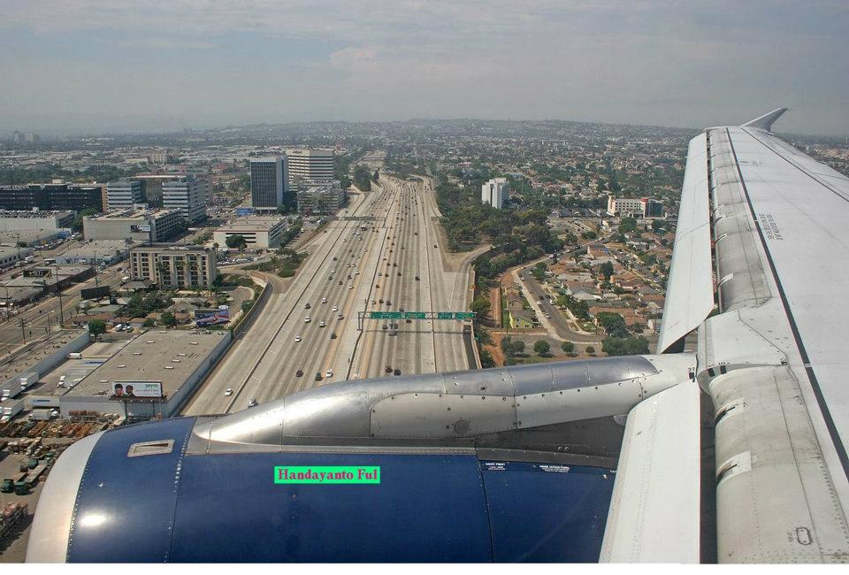 Dalam penerbangan UA ((Airbus A319-131) dari Dallas/DFW ke Los Angeles/LAX's, terlihat disamping kanan bawah (sebelum mendarat di LA airport) adalah jalan bebas hambatan/highway 12 jalur.