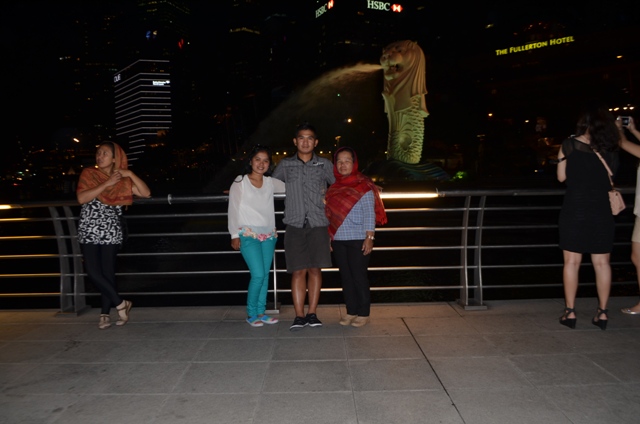 pada 5 agustus dari malaysia kami akan ke thailand namun harus transit semalam di singapore. setibanya di singapore sekitar pkl 20.00 kami rencana akan menuju merlion. setelah bertanya2 pada 'counter rent car' yg sangat fasih berbahasa indonesia. katanya kalau malam icon singapore patung singa itu airnya sudah mati. dan juga disana sudah gelap. mendengar keterangan mereka, akhirny 3 orang teman kami yg kami andlin selama di perjalanan lantaran mereka fasih berbahasa inggris dan juga udah ke singapore akhirnya memutuskan untuk tidak keluar bandara changi. sangat mengecewakan..
