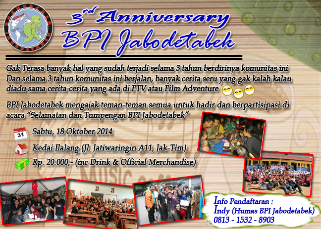 BPI Jabodetabek mengajak temen-temen semua untuk ikut acara selamatan ke 3 komunitas ini..