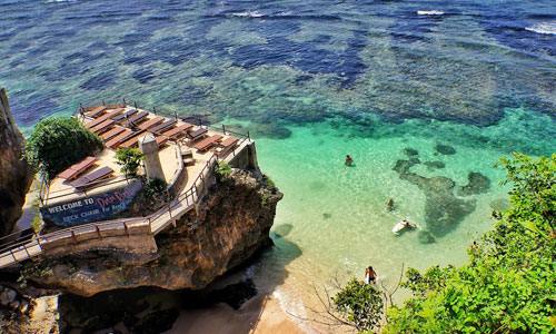 Nama asli pantai ini adalah Pantai Suluban, namun wisatawan lebih mengenalnya dengan nama Pantai Blue Point. Lokasinya berada di Desa Pecatu, Kecamatan Kuta Selatan, Kabupaten Badung, Provinsi Bali. Letaknya tersembunyi di balik bebatuan karang.