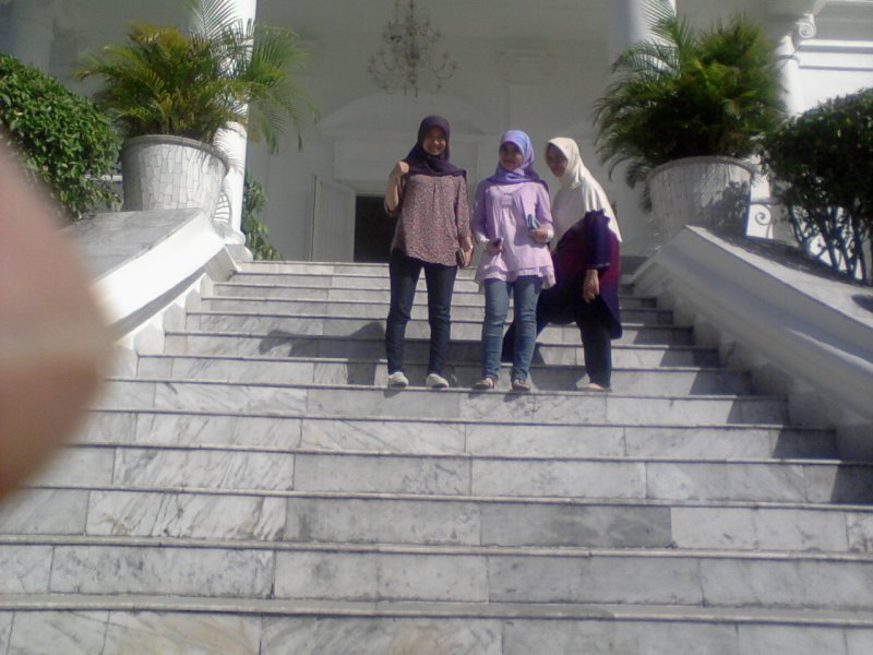 Sampai di Bogor kami tanya-tanya orang sekitar pintu masuk Istana Bogor tapi gak nemu. Sampai akhirnya kita ketemu rombongan orang yang juga mau masuk Istana Bogor, langsung deh kita gabung. Kita disuruh masuk ke Gedung apa ya.. Depan Istana Bogor. Sambil menunggu barang bawaan alias tas harus dititipkan tidak boleh dibawa kecuali dompet dan HP. Setelah itu baru deh kita digiring kesana :bigsmile: