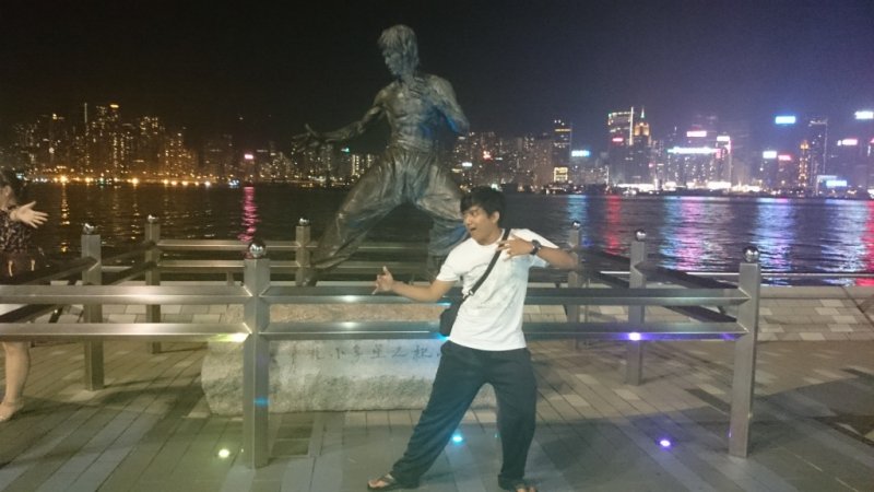 Saya landing tepat pada malam hari dan Hostel saya bertepat di Tsim sha tsui sehingga sangat dekat denga patung om lee alias Brucee Lee. pemandangan larut malam sepertinya juga kurang asyik